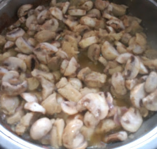 Mientras, preparar el relleno. Las uvas se ponen en remojo en el vino. El cerdo y la ternera molidos se escurren para que no larguen agua, se les agrega las cebollas ralladas, el pan previamente mojado en leche, triturado y exprimido; la mostaza, salsa de tomate, vinagre, los huevos crudos, sal y pimienta al gusto, las uvas junto con el vino y por último las arvejas.